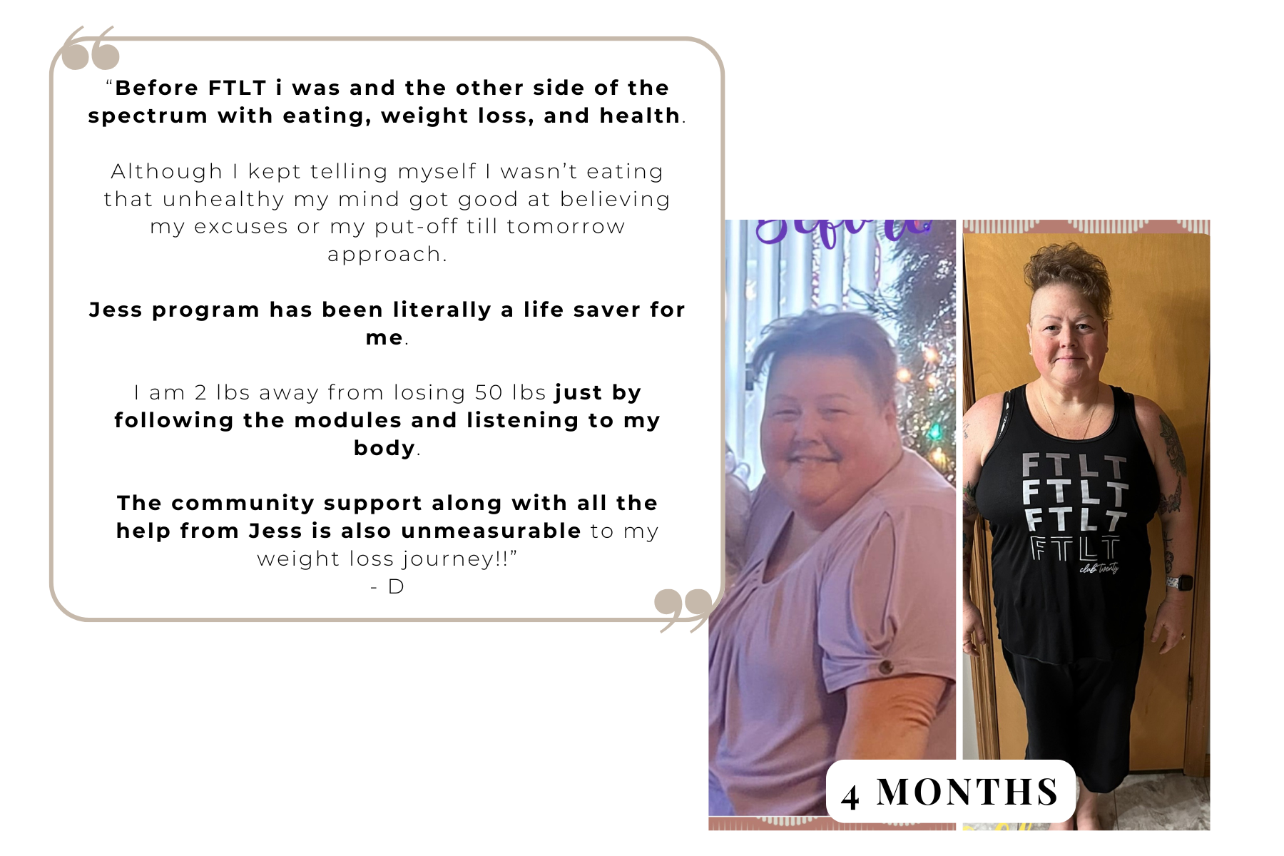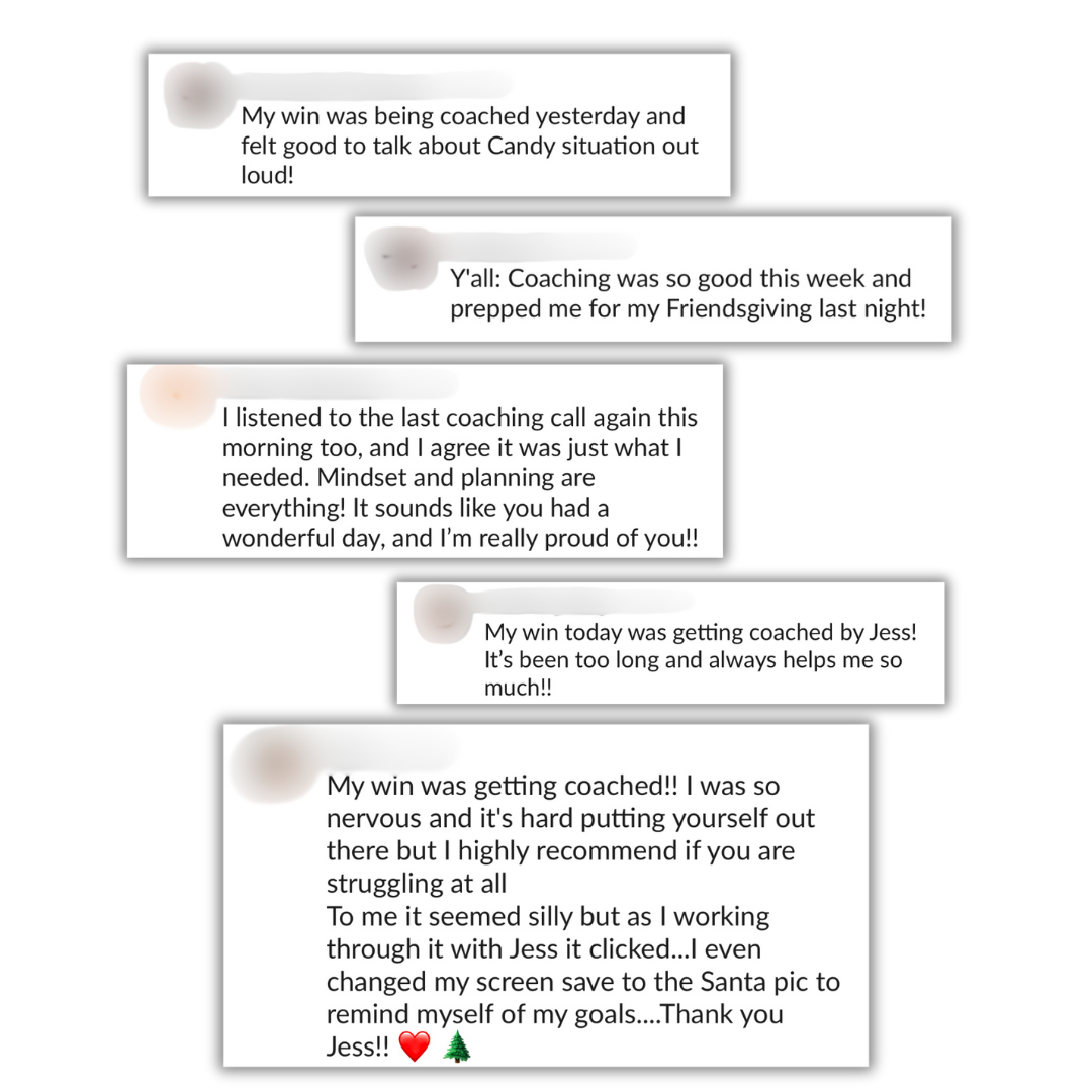 Inside a tight-knit, judgment-free space full of women on the same journey — with daily encouragement and access to Jess between calls.